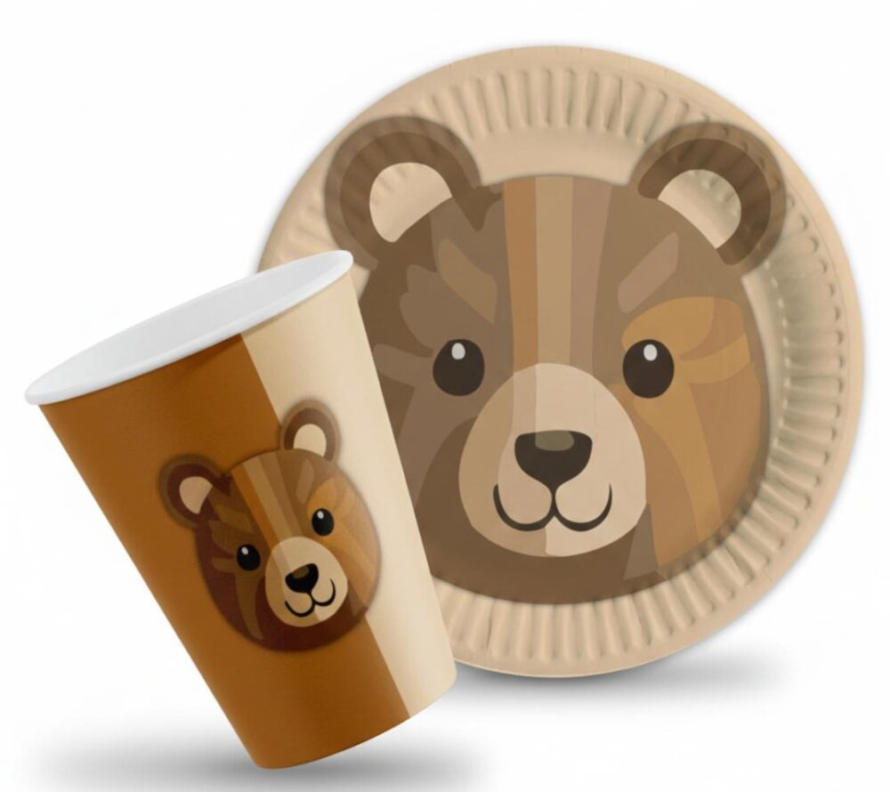 Sevimli ayıcık tasarımıyla doğum günü ve konsept partilerinize neşe katın! Çocukların favorisi olan bu set, hem şık hem de pratik bir çözüm sunar. 1. sınıf kağıt malzemeden üretilmiş tabak ve bardaklar dayanıklı yapısıyla dikkat çeker. Tek kullanımlık olması sayesinde hijyenik ve kolay kullanım sağlar.
