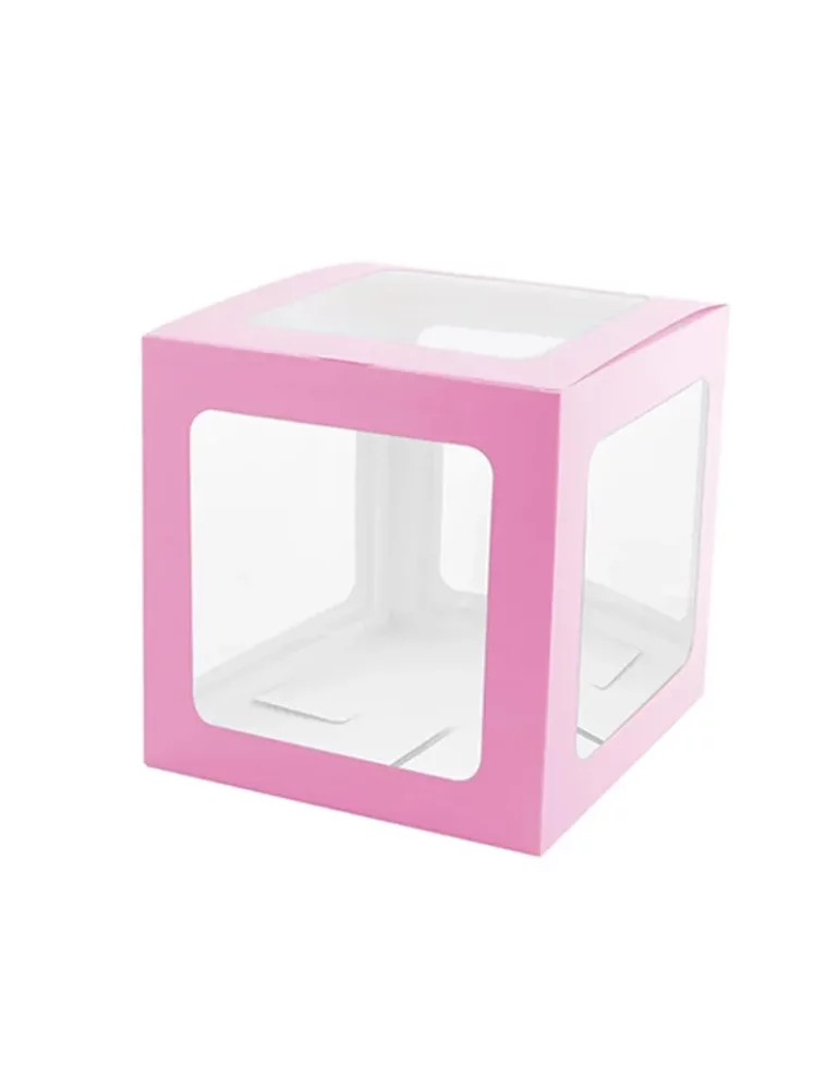 tlamalarınıza zarif bir dokunuş katın! Pembe balon kutusu, doğum günü, baby shower, nişan ve özel etkinlikler için mükemmel bir dekoratif üründür. Şeffaf yüzeyleri sayesinde içine yerleştirdiğiniz balonlar veya süsler görünür, ortama şıklık katar. Dayanıklı karton ve asetat malzemeden üretilmiştir. Demonte olarak gönderilir ve kolayca kurulabilir. Balonlar dahil değildir, sadece kutu gönderilir.