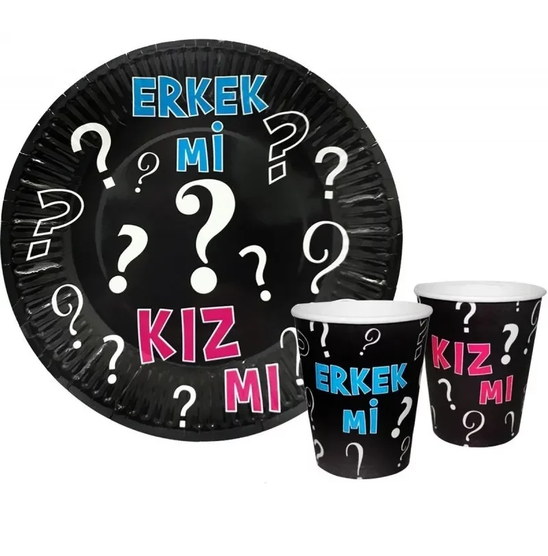 Cinsiyet belirleme partinize şık bir masa düzeni hazırlayın! Erkek mi Kız mı? Temalı Tabak Bardak Seti, pembe ve mavi tonlarıyla tasarlanmış olup etkinliğinize renk katıyor. Hem pratik hem estetik olan bu set, baby shower ve özel kutlamalar için ideal.