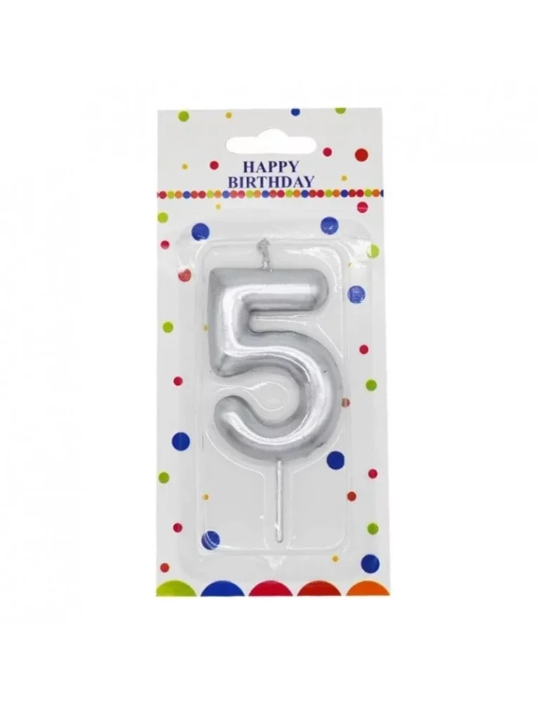 Kutlamalarınıza zarif bir dokunuş katın! Gümüş Rakam Mum 5, parlak metalik yüzeyiyle pastalarınıza şık bir görünüm kazandırır. Doğum günü, yıl dönümü veya özel günlerde rakam kombinasyonlarıyla yaşınızı vurgulamak için idealdir.