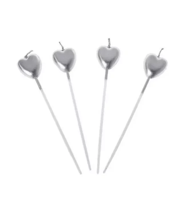 ümüş renkli kalp şeklinde mum seti, romantik ve şık dekorasyonlar için mükemmel bir seçimdir. Parlak metalik yüzeyiyle göz alıcı bir görünüm sunar ve özel günlerinize zarif bir atmosfer katar. Doğum günü, nişan, düğün, yıl dönümü veya romantik akşam yemeklerinde masanızı tamamlayacak ideal bir dekoratif üründür.
