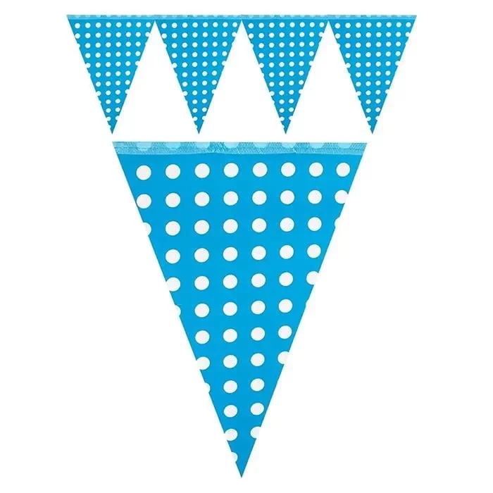 Kutlamalarınıza zarif bir dokunuş katın! Mavi Beyaz Puantiyeli Pembe Flama, canlı pembe rengi ve beyaz puantiye desenleriyle doğum günü, baby shower ve özel davetler için mükemmel bir dekoratif detaydır. 10 adet üçgen flama ile hazırlanan set, iç ve dış mekanlarda kolayca asılabilir. Dayanıklı malzemesi sayesinde tekrar kullanılabilir ve ortamınıza şık bir atmosfer kazandırır.