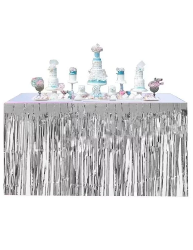 Kutlamalarınıza şıklık ve ışıltı katın! Gümüş Metalize Masa Eteği, doğum günü, nişan, düğün ve özel davetler için mükemmel bir dekoratif detaydır. Parlak metalize yüzeyiyle masanıza modern ve göz alıcı bir görünüm kazandırır. Kolayca masanın kenarına sabitlenir ve etkinlik boyunca formunu korur. Parti konseptinizi tamamlamak için ideal bir seçim!