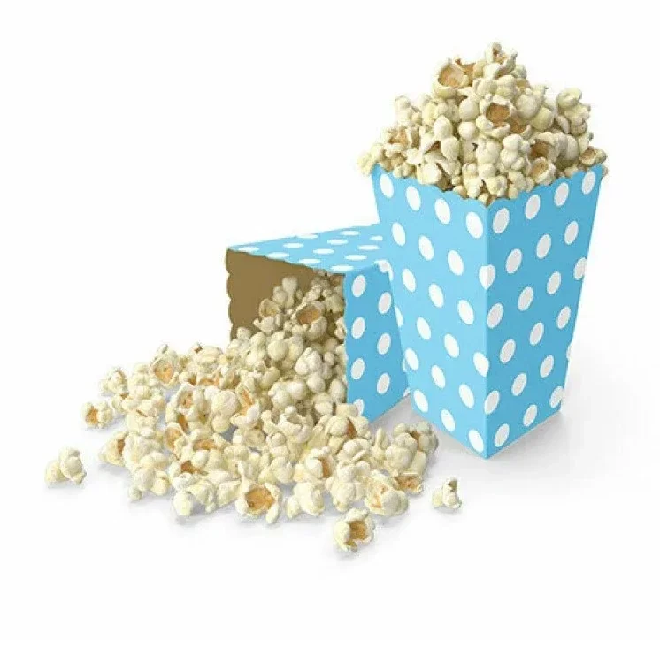 Partilerinize zarif bir dokunuş katın! Mavi puanlı mısır kutusu seti, doğum günü, baby shower, sinema gecesi ve özel etkinlikler için ideal bir sunum çözümüdür. Şık mavi rengi ve puantiye deseniyle konseptinize uyum sağlar. Gıda ile temasa uygun kaliteli kartondan üretilmiştir. Patlamış mısır, cips, kuruyemiş gibi ikramlıklar için mükemmel bir seçimdir. Demonte olarak gönderilen kutular kolayca kurulabilir ve pratik kullanımıyla öne çıkar.