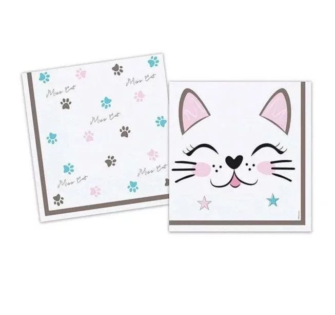 Parti sofralarınıza sevimlilik katın! Miss Cat Peçete, şık tasarımı ve canlı renkleriyle doğum günü, kutlama ve özel davetlerinizde konseptinizi tamamlayan harika bir detaydır. Yumuşak dokusu sayesinde konforlu kullanım sunar, tek kullanımlık yapısı hijyen sağlar. Çevre dostu malzemeden üretilmiş olup sağlığa zararlı madde içermez. Sofralarınıza hem estetik hem de pratik bir çözüm getirir.