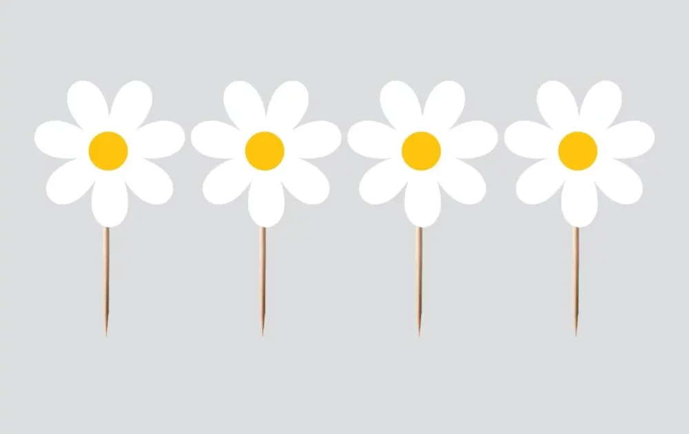 Masalarınıza bahar esintisi katın! Papatya Temalı Kürdan 8'li set, zarif papatya figürleriyle cupcake, muffin, kanepe veya kokteyl sunumlarınıza şıklık kazandırır. Doğum günü, baby shower, bahar konseptli partiler ve özel davetler için ideal bir dekoratif detaydır. Dayanıklı malzemesi sayesinde yiyeceklerle temas için güvenlidir ve tek kullanımlık olarak hijyenik bir kullanım sunar.