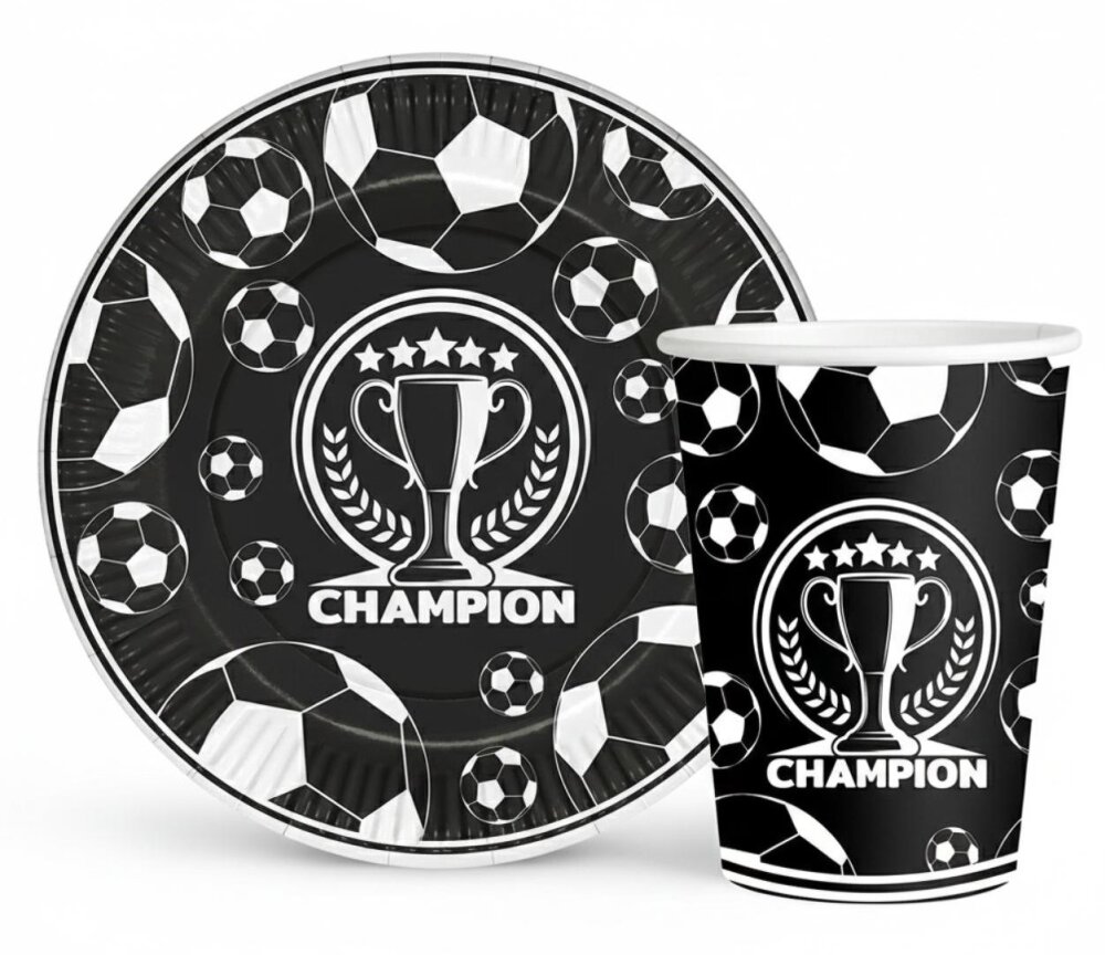 Takım ruhunu yansıtan siyah beyaz tasarımıyla doğum günü, taraftar buluşmaları ve konsept partiler için mükemmel bir seçim! 1. sınıf kağıt malzemeden üretilmiş tabak ve bardaklar hem dayanıklı hem de pratik kullanım sağlar. Tek kullanımlık yapısıyla hijyenik ve kolaydır.