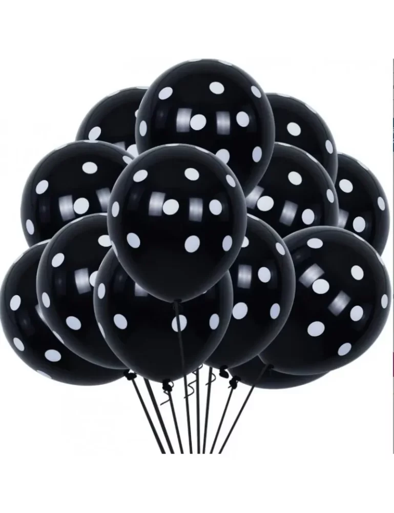 #10 adet siyah puanlı baskılı balon 12 i̇nç İstoç parti m