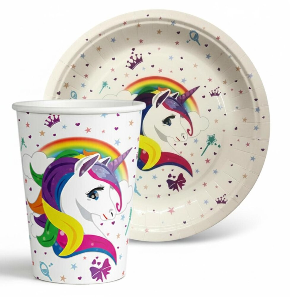 Unicorn Temalı Tabak ve Bardak Seti – 8’li Parti Malzemeleri