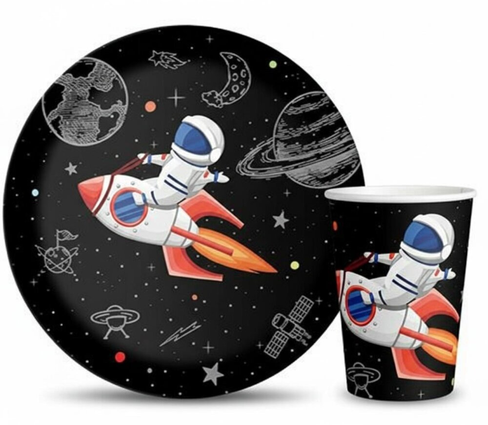 Uzay Temalı Tabak ve Bardak Seti – 8’li Parti Malzemeleri